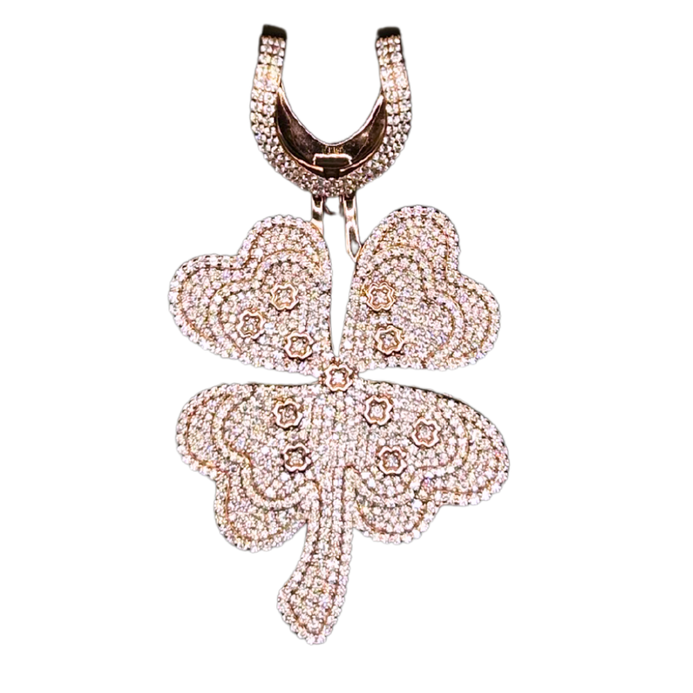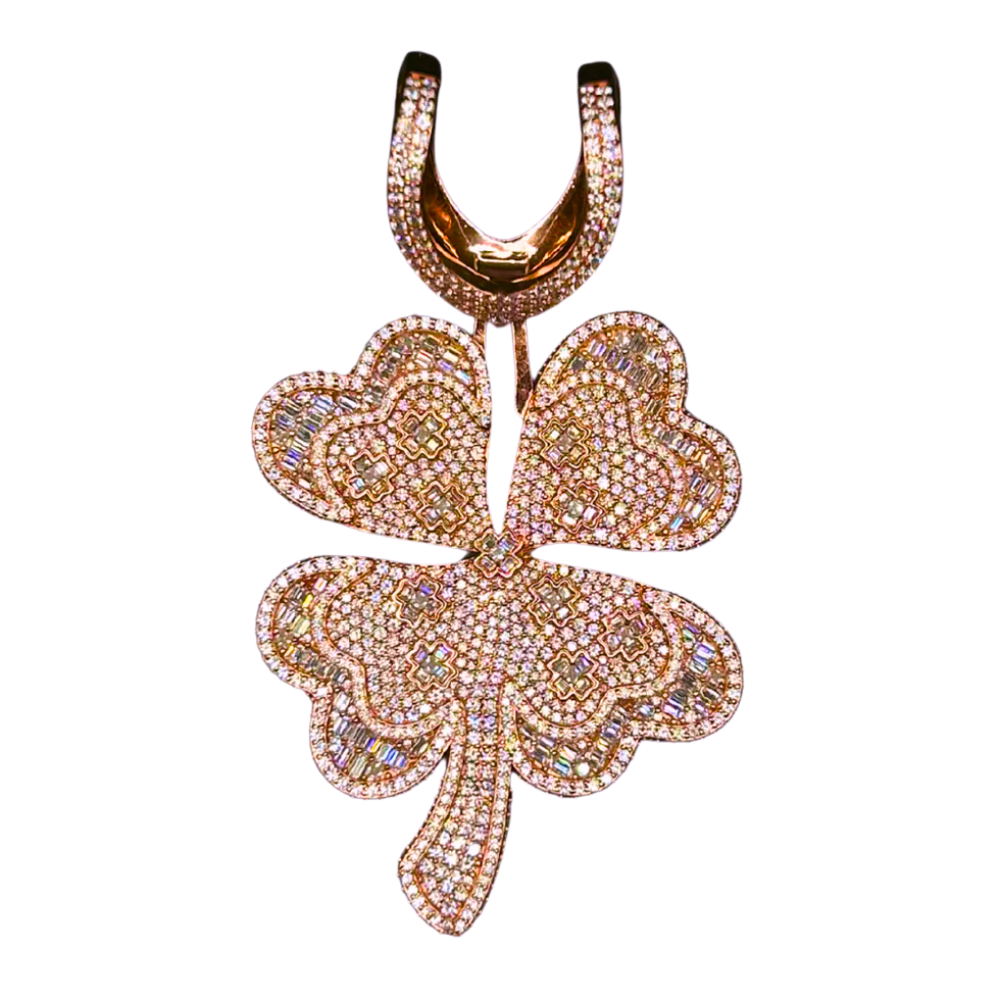 CUSTOM ICED OUT 'KLAVER' ROSÉ MOISSANITE DIAMANTEN HANGER - 925 ZILVER -