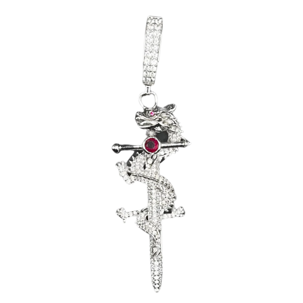 ZILVEREN ICED OUT DRAAK HANGER - 925 ZILVER -