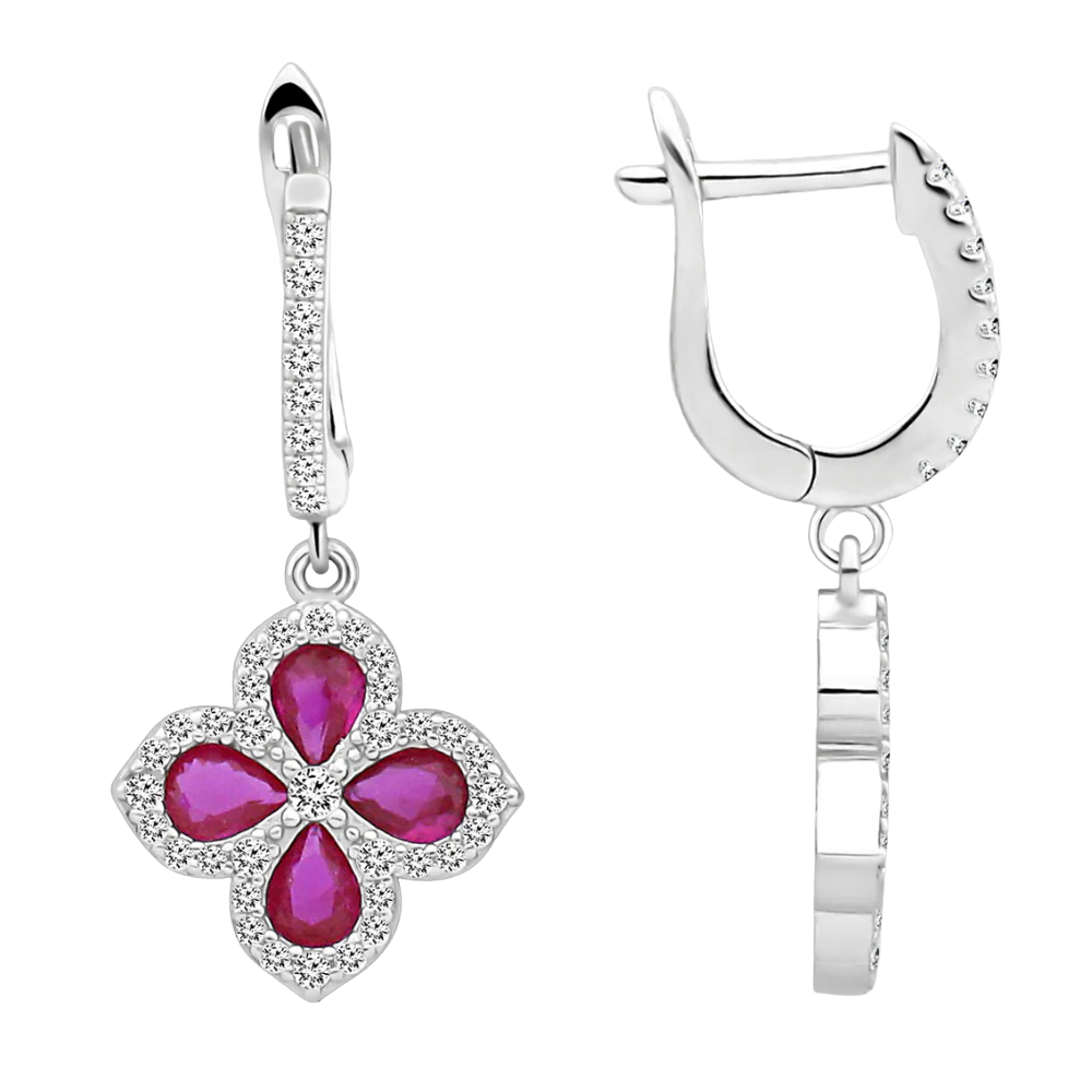 Zilveren roze klaver oorbellen - 925 zilver -